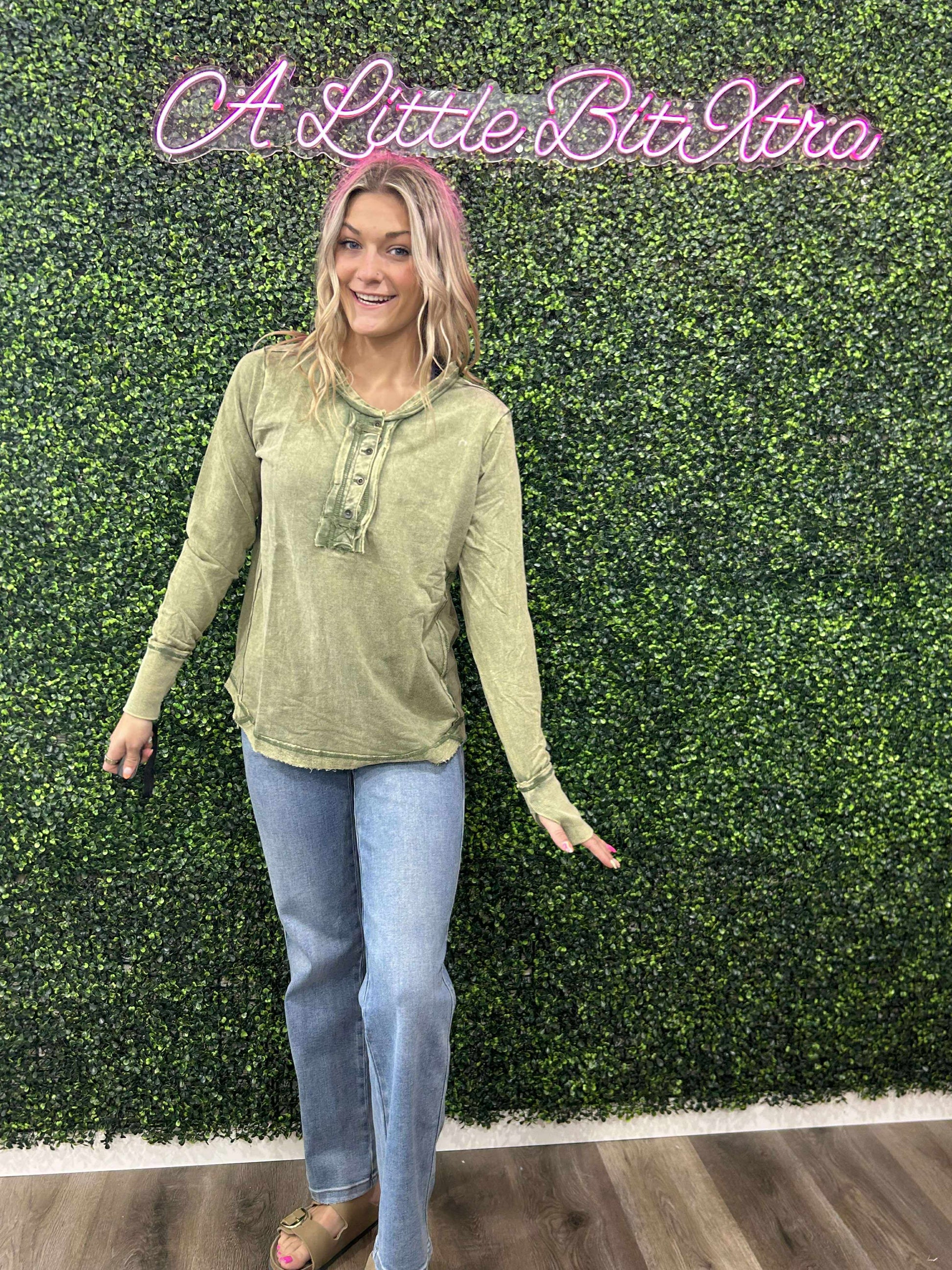 ASH OLIVE THUMB HOLE LONG SLEEVE TOP